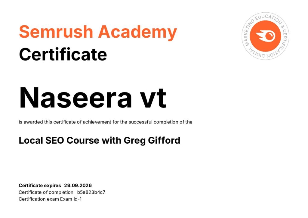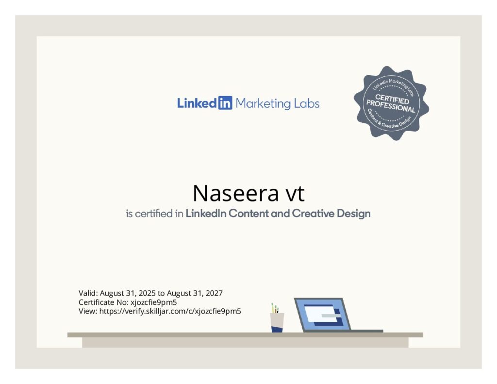 Hey, I’m Naseea vt, a Google certified freelance virtual advertising and marketing strategist positioned in Malappuram, Kerala. With a study basis in the Business Administration (BBA), I help develop companies via combining creativity with Data-Driven strategies.My Expertise includes SMM ( social media marketing), SEM (search engine marketing),SEO (search engine optimization), content marketing, web Development and Graphic Designing.I help brands fortify their online presence through statistics-driven digital strategies that deliver constant outcomes.I trust in aligning enterprise desires with target market wishes, ensuring each marketing campaign is both impactful and outcomes-pushed. By staying updated with the trendy virtual trends, I carry adaptability, innovation, and sustainable increase to every venture I create.